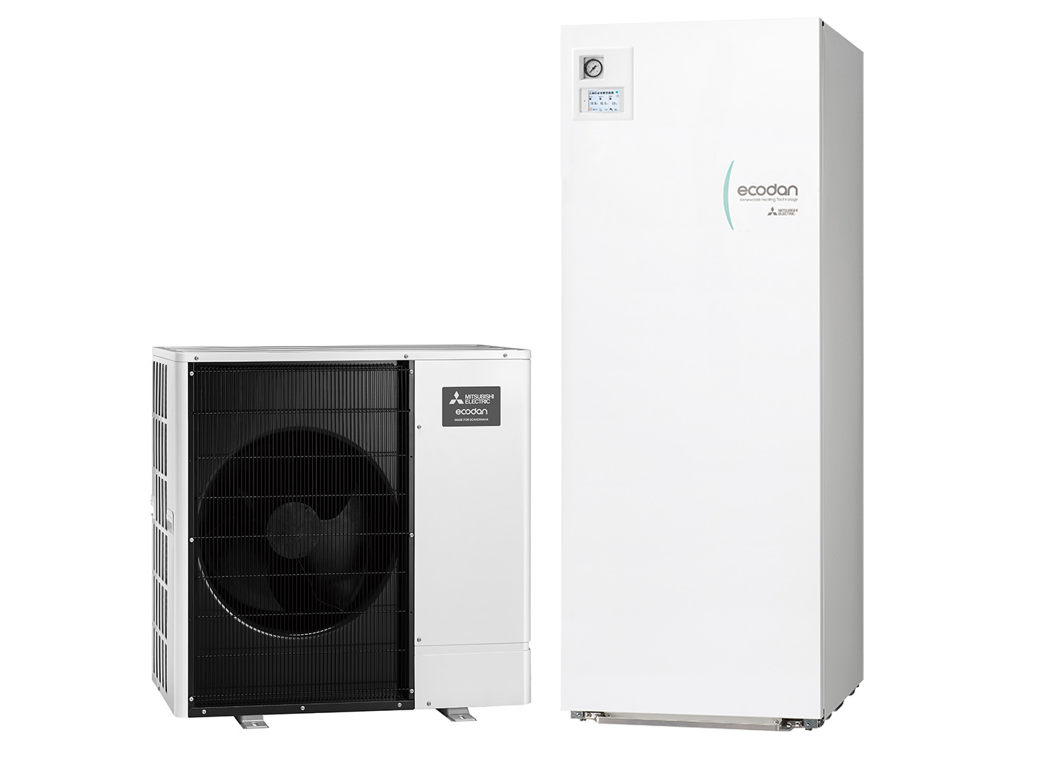 Ecodan-lämpöpumppuja on useita erilaisia malleja ja kokoluokkia, mikä tarkoittaa, että voit valita taloosi aina parhaiten sopivan laitekokonaisuuden. Sisäyksikkö on vain 1,6 metriä korkea, mutta sisältää silti varaajan, johon mahtuu 200 litraa käyttövettä. Kiitos Ecodan-varaajayksikön pienen koon, se on helppo sijoittaa myös mataliin tiloihin.