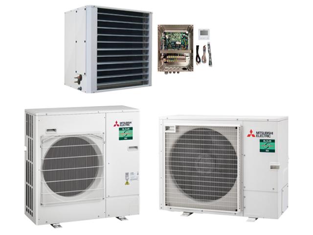 Mitsubishi Electricin suurten tilojen ilmalämpöpumppu lämmittää kustannustehokkaasti suuret tilat. Kesällä voit halutessasi myös viilentää samaisella laitteella. Nopea ja yksinkertainen käyttöönotto. Ulkoyksikkö asennetaan rakennuksen ulkoseinustalle ja siitä johdetaan kylmäaineputket hallin seinälle asennettavaan sisäyksikköön (kiertoilmakojeelle).